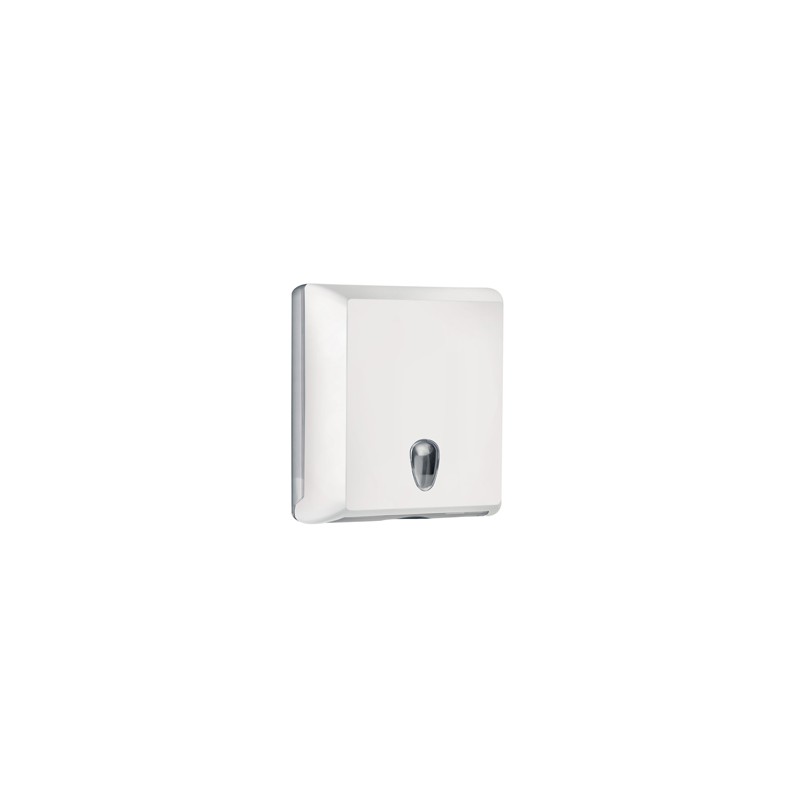 Adatto per asciugamani piegati a "C", a "Z". bianco Ecolored. Capacità 320 fogli. Dimensioni: l29 x p10,5 x h30cm. Profondità interna 8,5cm.