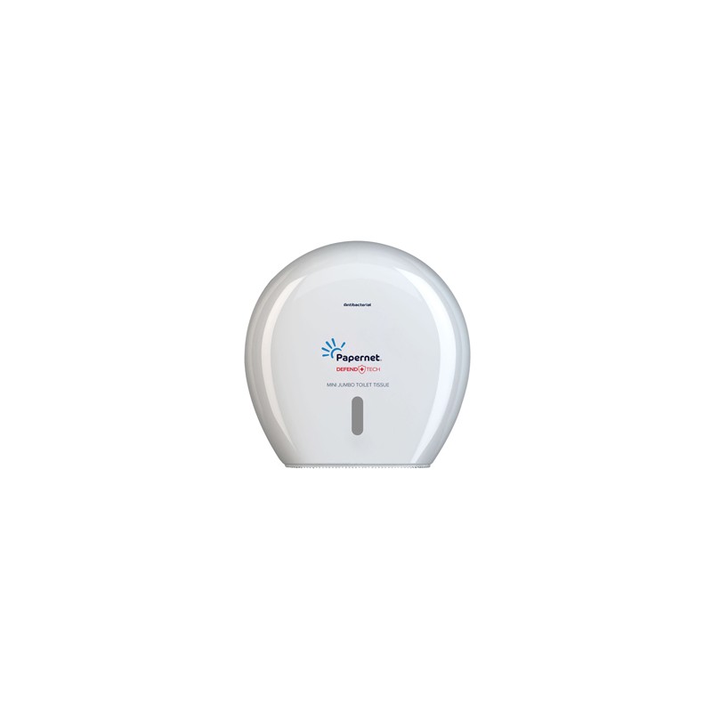 Il dispenser Defend Tech bianco per carta igienica mini jumbo è la soluzione ideale per locali con media affluenza e bagni di piccole dimensioni