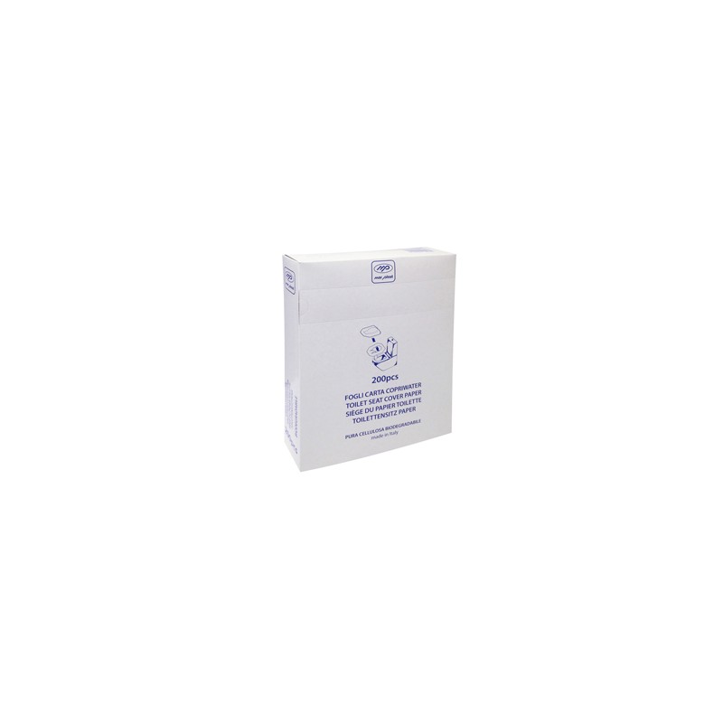 Carta copri WC bianca in fogli. Composizione 50% cellulosa vergine e 50 % fibre riciclate. Forma del copri WC: rettangolare con fustellatura centrale ricalcante la sagoma del sedile. Dimensioni del copri WC: 42x37,5cm. Adatta per dispenser cod. 61096.