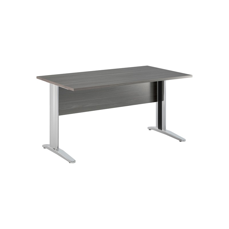 Scrivanie con dimensioni conformi alle normative sulla sicurezza dei posti di lavoro in ufficio. Bordatura dei piani in ABS 2mm antishock ed assenza di spigoli vivi. Le scrivanie sono disponibili nella versione con fianchi pannello in melaminico (sp. 22 mm) o con fianchi in metallo ad L verniciati effetto cromo completi di piedini regolabili in altezza e canalina passacavi ispezionabile. Dimensioni: L140 x P80 x H72cm