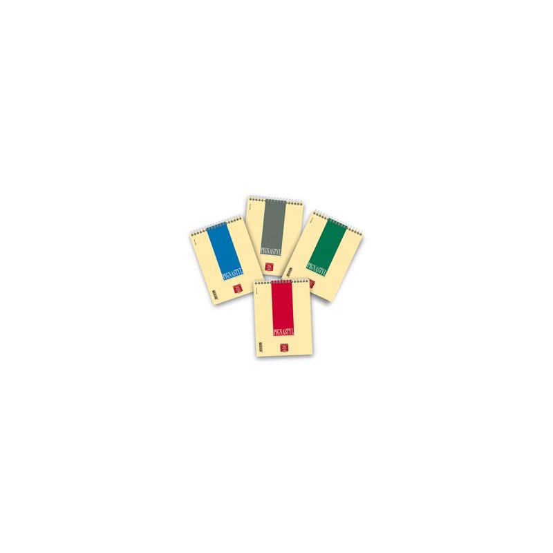 Blocco spiralato sul lato corto. Copertina goffrata da 200gr. Cartone di fondo pesante da 600gr. Formato A5-15x21cm. Rigatura 5mm. 60 fogli da 80 gr.