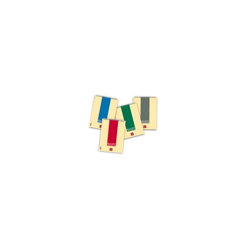 Blocco spiralato sul lato corto. Copertina goffrata da 200gr. Cartone di fondo pesante da 600gr. Formato A4-21x29,7cm. Rigatura 5mm. 60 fogli da 80 gr.