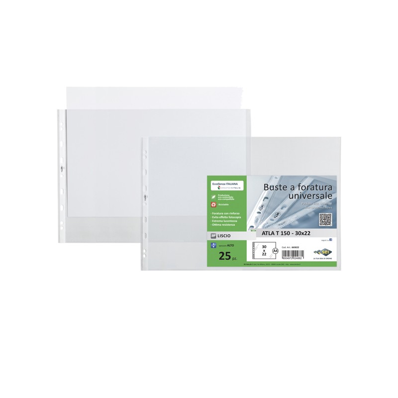 Buste forate Atla T - pesante - liscio - 30 x 22 cm (album) - trasparente - Sei Rota - conf. 25 pezzi
