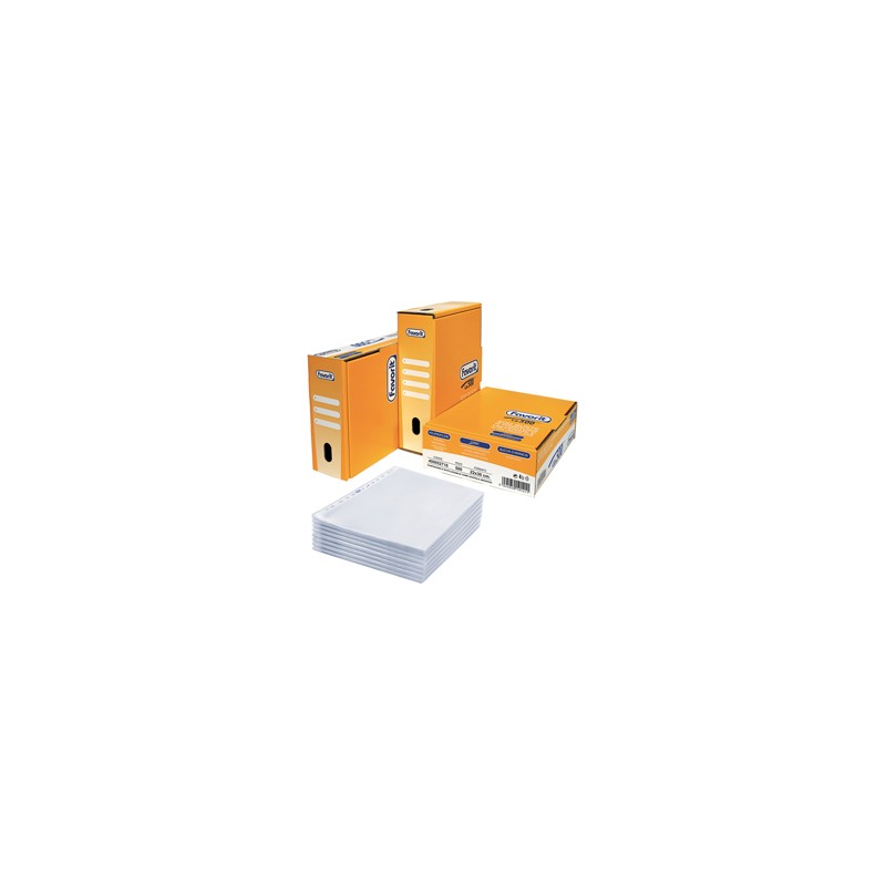Busta in PP di alta qualità nella speciale scatola in cartone riciclato. Il contenitore, grazie al sIstema di chiusura e ai fori di presa, si riutilizza come scatola archivio. Busta con foratura universale buccia 22x30cm. Dimensioni della scatola: 27x35x13,5cm. Made in Italy.