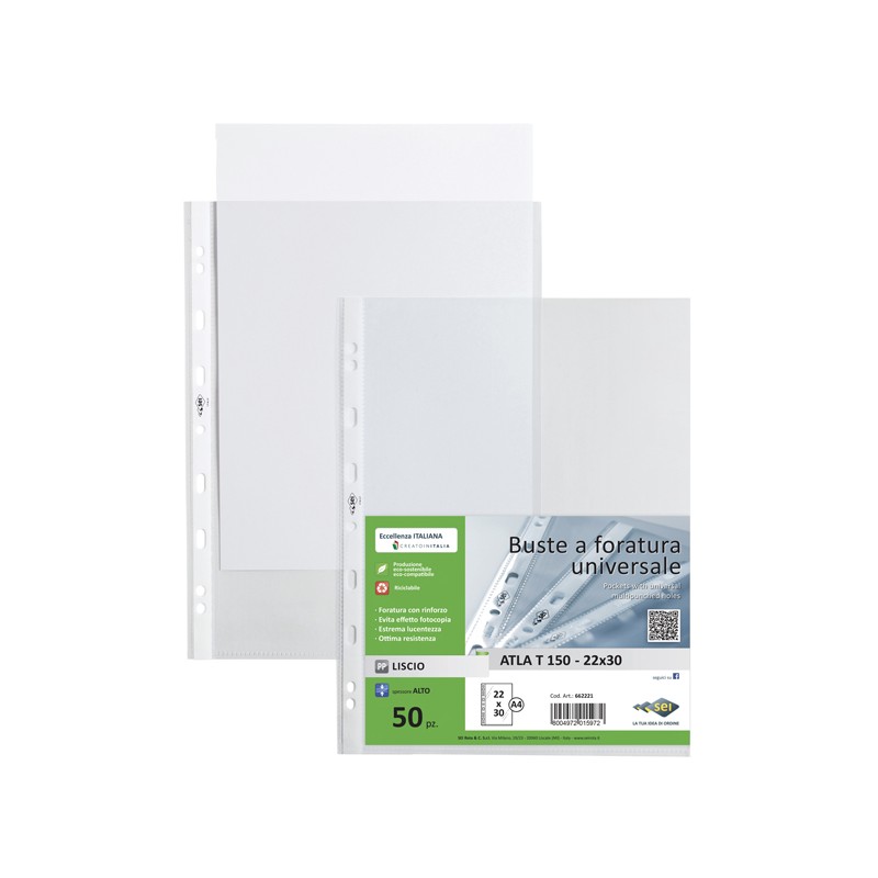 Buste forate Atla T - pesante - liscio - 22 x 30 cm - trasparente - Sei Rota - conf. 50 pezzi
