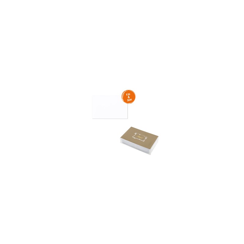 Scatola in acetato trasparente con 100 cartoncini bianchi da 240gr liscio. Formato 4-69x106mm.