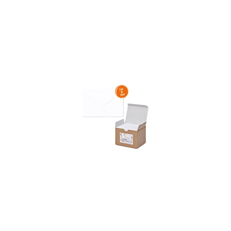 Scatola in cartone con 100 buste con patella e taglio a punta. Formato 4-75x112mm.