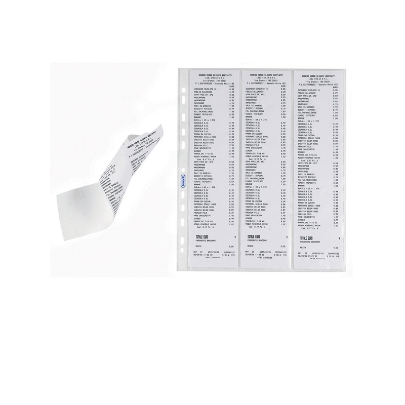 Buste forate per scontrini fiscali - 6 Spazi - 25,2 x 30,7 cm - trasparente - Favorit - conf. 10 pezzi