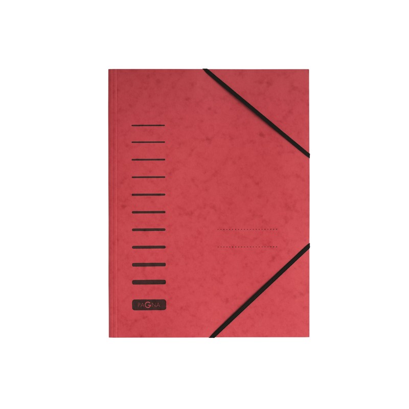 Cartellina, per documenti in formato A4, in robusto cartone pressato da 335 gr, con elastico angolare nero per l’archiviazione sicura dei documenti senza fori. Diverse opzioni di piegatura in funzione del volume di fogli, area per marcatura personalizzata.