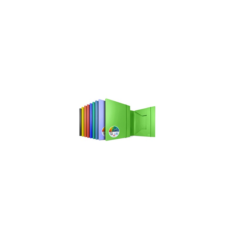 Cartella 3 lembi con elastico Garda - 25,7 x 34,5 cm - dorso 2 cm - PP - colori assortiti - Plastibor