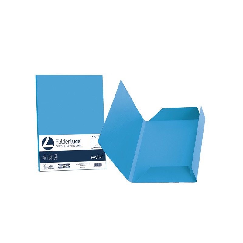 Cartellina 3 lembi Luce - 200 gr - A4 - cartoncino bristol - azzurro - Favini - conf. 25 pezzi