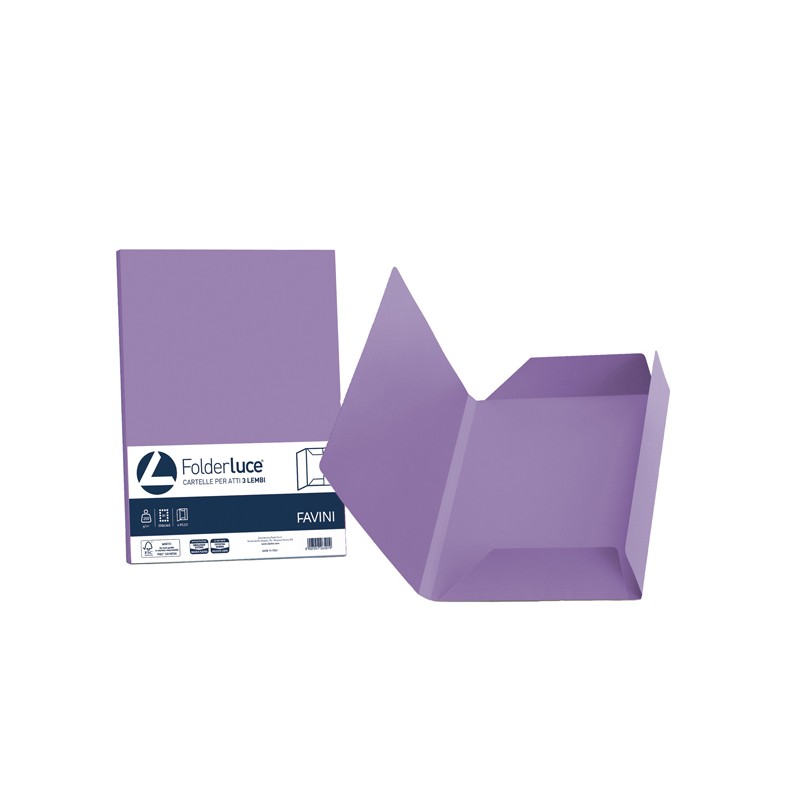 Cartellina 3 lembi Luce - 200 gr - A4 - cartoncino bristol - violetto - Favini - conf. 25 pezzi