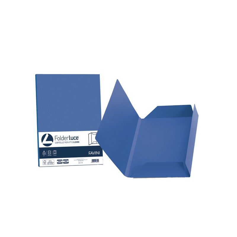 Cartellina 3 lembi Luce - 200 gr - A4 - cartoncino bristol - blu prussia - Favini - conf. 25 pezzi
