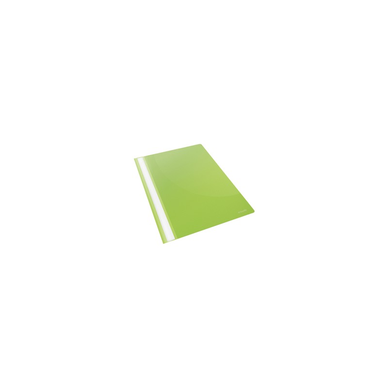Cartelline Report File realizzata in PPL verde vivida con due linguelle per l'archiviazione di documenti forati. Etichetta longitudinale estraibile. Formato utile: 21x29,7cm.