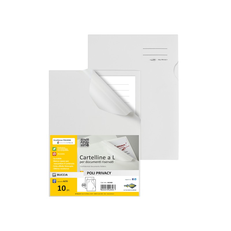 Cartellina a L Poli Privacy - A4 - PP - liscio pesante - bianco opaco per documenti riservati - Sei Rota