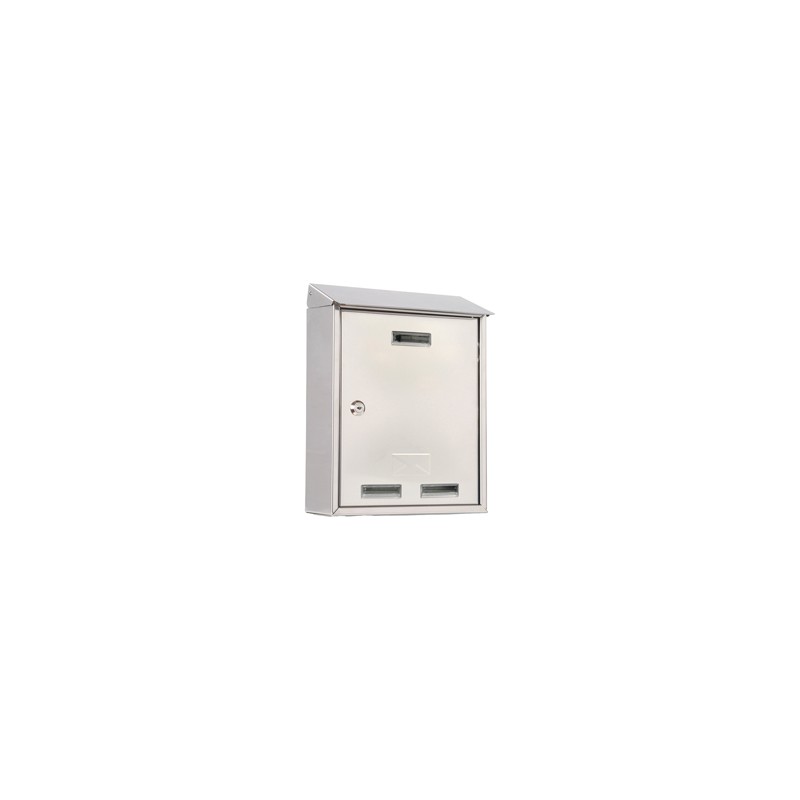 Cassetta postale Elios in acciaio inossidabile tipo 430 2B/SB ricoperto di pellicola bassa adesività (da rimuovere) con tetto antipioggia e serratura a chiave cifrata. Si consiglia di non esporre la cassetta direttamente alle intemperie e di non installarla in zone di mare in quanto potrebbe arrugginirsi.