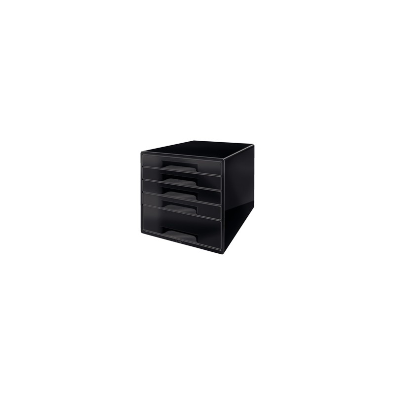 Cassettiera Black & White da 5 cassetti: 4 cassetti poco profondi + 1 cassetto alto per accessori da scrivania, come cucitrice, dispositivi mobili, ecc. Cassettiere impilabili fino a 3 moduli. Ergonomico buco presa nella parte inferiore del cassetti poco profondi per una facile rimozione dei documenti. Dimensioni utili: cassetti bassi L245x H34xP325mm, cassetto alto L245xH71xP325mm. Peso Kg3,59. Piedini in gomma. Dimensioni L287xH270xP363mm.