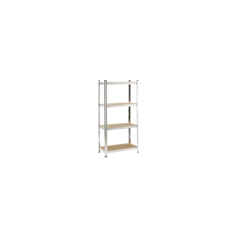 Scaffale in metallo galvanizzato ad incastro con 4 ripiani in MDF, spessore 4 mm, portata massima 150 kg per ripiano uniformemente distribuiti. Spessore struttura 0,63 mm. Prodotto da assemblare. Dimensioni: H160 x P40 x L80cm. Articolo destinato ad esclusivo uso domestico. Non adatto ad uso pubblico.