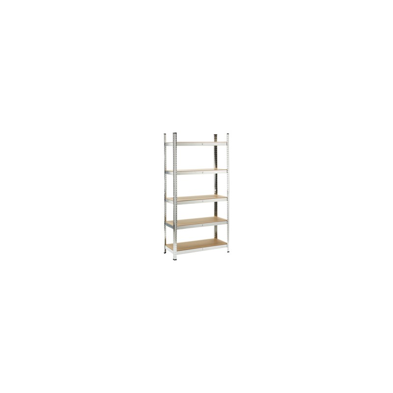 Scaffale in metallo galvanizzato ad incastro con 5 ripiani in MDF, spessore 4 mm, portata massima 175 kg per ripiano uniformemente distribuiti. Spessore struttura 0,63 mm. Prodotto da assemblare. Dimensioni: 180x40x90cm. Articolo destinato ad esclusivo uso domestico. Non adatto ad uso pubblico.
