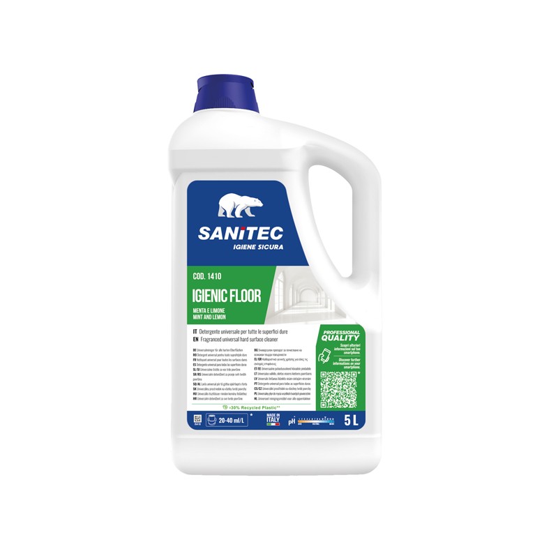 Detergente universale per tutti i tipi di pavimento e superfici dure, su qualsiasi tipo di sporco. Ideale per le pulizie generali di manutenzione quotidiana, lascia le superfici brillanti e profumate a lungo. Modalità d'uso: diluire il prodotto secondo le dosi consigliate, procedere con il lavaggio con mop o con lavasciuga senza antischiuma. Non necessita di risciacquo. Prodotto concentrato leggermente alcalino con un ottimo potere sgrassante. pH: 11. A schiuma controllata, utilizzabile con metodo mop o con macchine lavasciuga. Non necessita di risciacquo e non lascia aloni. Grazie alla sua profumazione a menta e limone, elimina i cattivi odori e lascia nell’ambiente un gradevole profumo. I tensioattivi contenuti sono biodegradabili secondo i criteri definiti dalla Direttiva Europea 648/2004/CE e successive modifiche.