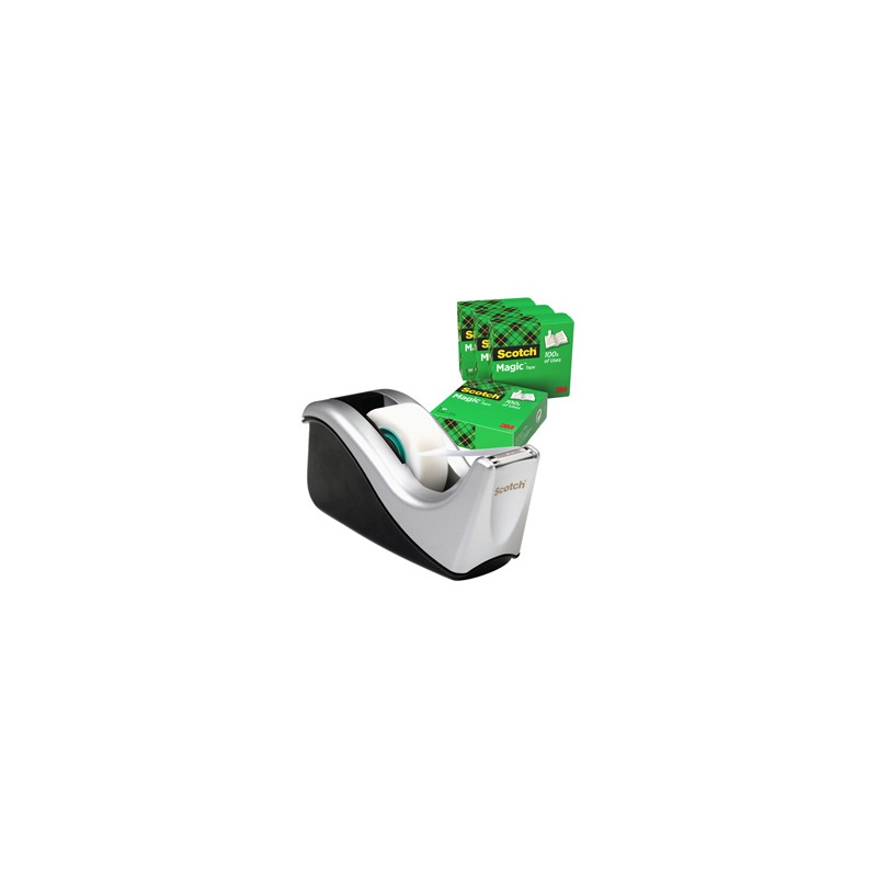 Dispenser C60 - per nastri 33 m - 4 rotoli Scotch Magic 810 inclusi - nero/argento - Scotch