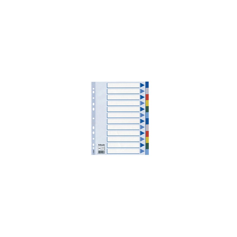 Separatori in Polipropilene colorato dotati di 12 tasti neutri multicolore. Indice frontale prestampato realizzato in cartoncino e rinforzato in Mylar sul lato forato. Perforazione universale. Formato A4.