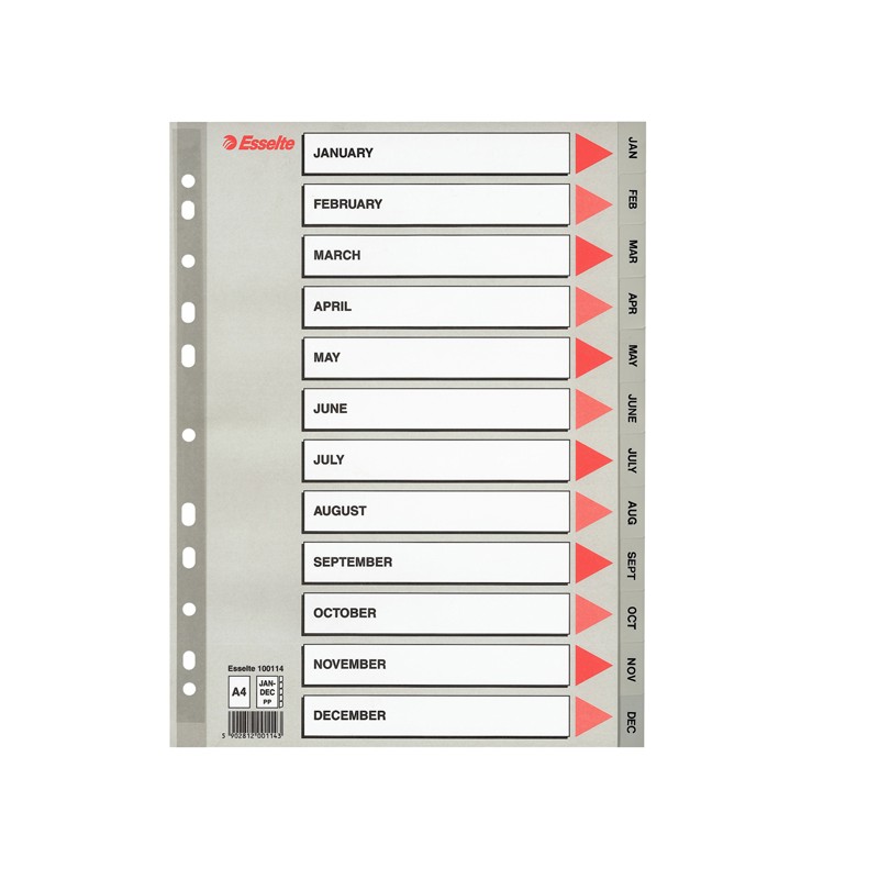 Separatore mensile Gen/Dic - PP - A4 - grigio - Esselte
