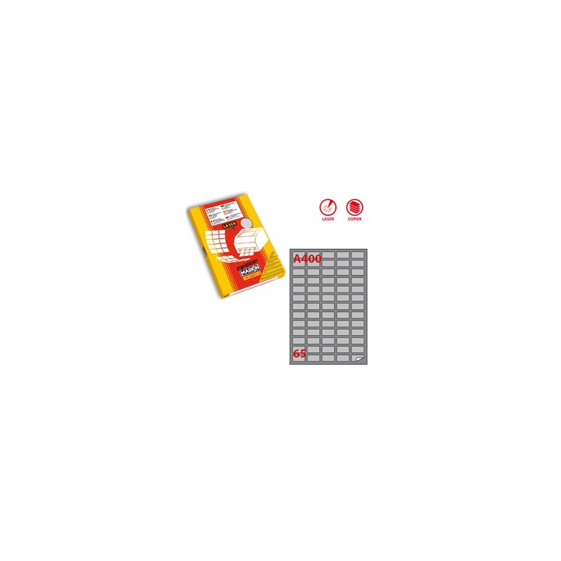 Etichette adesive A/400 - in carta - permanenti - 38,1 x 21,2 mm - 65 et/fg - 100 fogli - argento - angoli tondi - x las