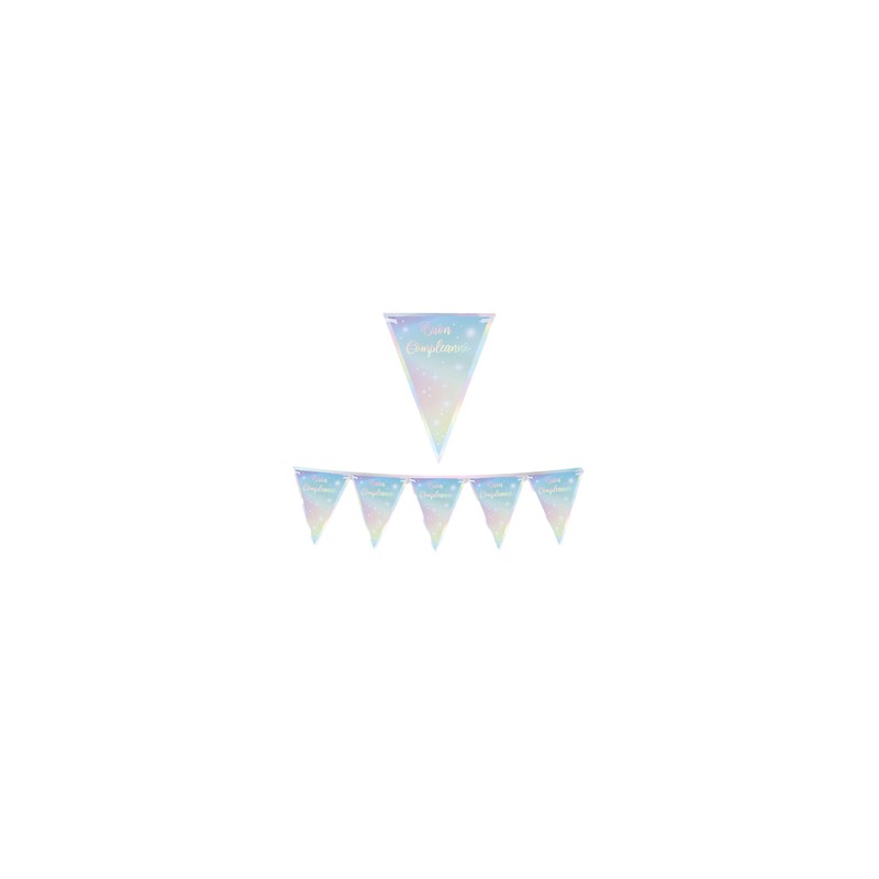 Festone bandiere Buon Compleanno Soft Rainbow in cartone, lunghezza 3mt.