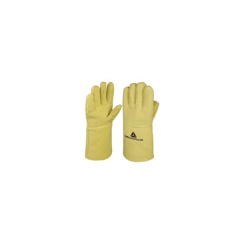Guanti anti-taglio & anti-calore 500°c. Esterno aramide tessuto. Interno 100% cotone. Lunghezza 36 cm. Manichetta in tessuto aramidico 16 cm. Colore giallo. Taglia unica. Caratteristiche speciali: Doppio isolamento, Ottime prestazioni al taglio e al calore, Protezione dell'avambraccio, Protezione contro gli effetti del calore da contatto. Fino a 250°C per 1 minuto. Fino a 500°C per 30 secondi. Categoria DPI: 3. Certificazione CE. Conformità alle norme EN ISO 21420:2020, EN388:2016+A1:2018 e EN407: 2020.