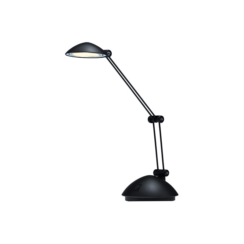 Lampada da tavolo con struttura in ABS e metallo con elegante finitura satinata. Bracci e testa facilmente regolabili. Lampadina led da 3W (inclusa, non sostituibile). Luce calda (3000K). garantita per 30mila ore. Certificazione energetica: E