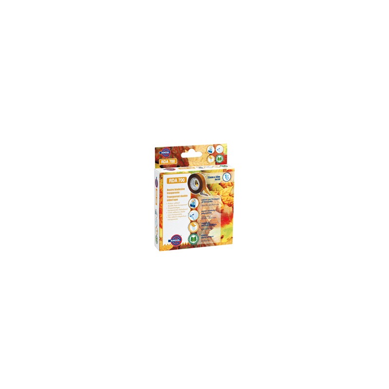 Nastro biadesivo realizzato per il fissaggio di fotografie, campionari, oggetti leggeri, piccoli lavori e laminazioni/accoppiamenti di materiali. Facile da usare. Alta appiccicosità ed adesività per entrambi i lati. Alto allungamento. Performante su differenti materiali e superfici. Lacerabile a mano (secondo il formato prodotto). Adesivo: gomma sintetica e resine, “solvent free”. Adesività lato esterno: 20 N/25mm. Adesività lato interno: 30 N/25mm. Carico/resistenza alla rottura: 100 N/25mm. Colore del nastro: trasparente. Resistenza all'allungamento: 140 %. Resistenza alla temperatura: 60 °C. Tipo supporto: film di BOPP da 28 µm. Spessore totale: 0,098 mm. Tipo e colore del liner: carta avana bisiliconata. KEYWORDS :