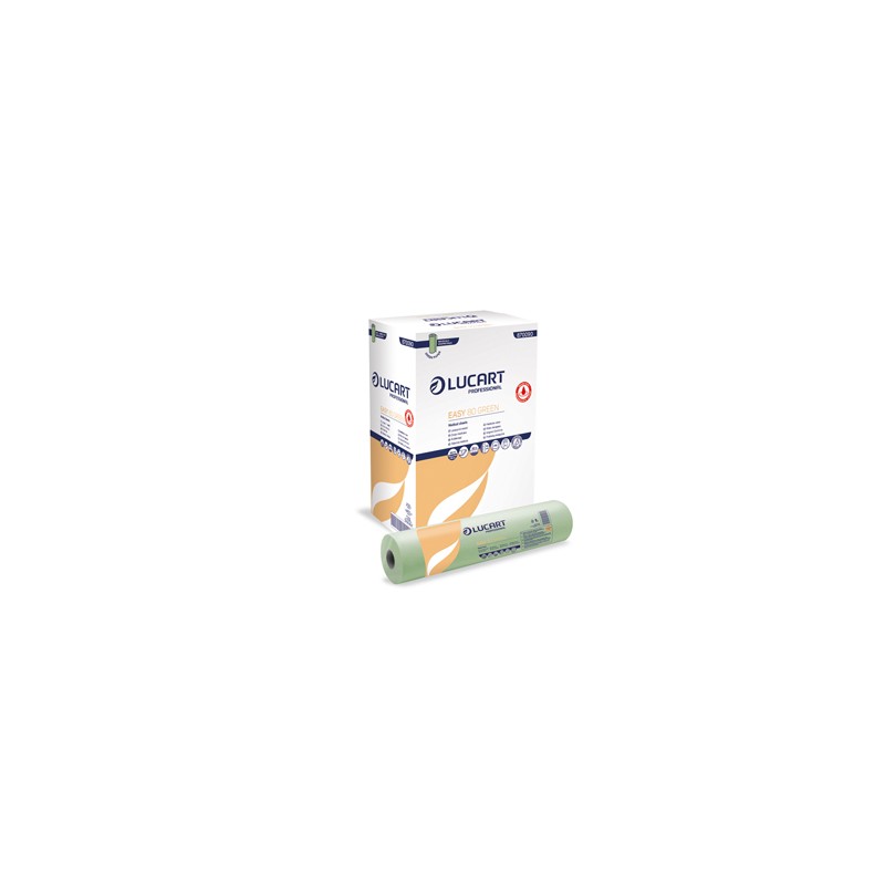 Lenzuolino medico in carta riciclata colore verde con trattamento antibatterico. 2 veli microgoffrato. Lunghezza del rotolo 80mt. Diametro rotolo: 14,3cm. Diametro interno: 4,5cm. Numero strappi 216. Lunghezza strappo 37cm. Altezza strappo 59cm.Testati dermatologicamente e trattati con lozione batteriostatica. Dati tecnici: Materia prima: carta riciclata Colore: Verde Goffratura: Micro Veli: 2 Grammatura(g/m2): 17,5 Lunghezza Rotolo : 80mt Diametro: 14,3cm Diametro anima: 4,5cm Numero strappi: 216 Altezza strappo: 59cm Lunghezza strappo: 37cm Confezione da 6 rotoli.