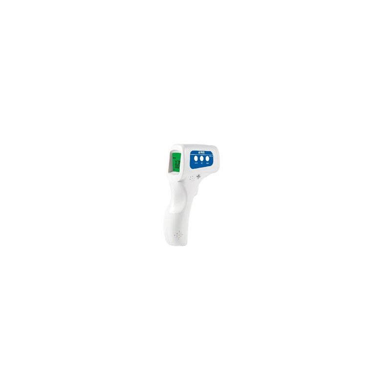 Termometro digitale a infrarossi per la misurazione a distanza della temperatura corporea. Punti di forza: facilitA' di lettura, rapiditA', precisione, affidabilitA' della misurazione, memoria, segnale acustico a fine misurazione.Specifiche tecniche:- Range di misurazione:da 32 C a 42.5 C- Precisione: +/- 0,2 C- Avviso acustico ad 1 secondo dall'avvenuta misurazione- Durata misurazione: circa 1 secondo.- Batteria DC 3V (2 pezzi AA- 32 memorie- Distanza di misurazione: circa 3-5 cm- Spegnimento automatico dopo 30 secondi- Display LCD a tre colori- Peso 105g incluse le batterieCE 0123. REPERTORIO DISPOSITIVI MEDICI Ministero della Salute nr. 1732780 classificazione CND V03010102