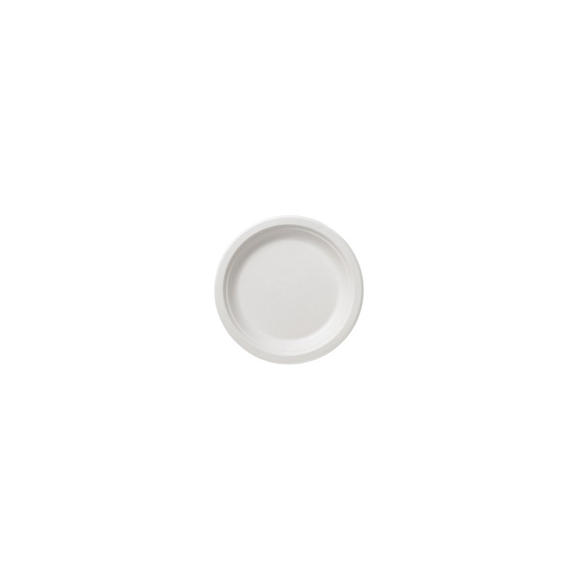 Piatti bianchi realizzati in polpa cellulosa di bamboo e canna zucchero. Biodegradabile e compostabile secondo norma EN13432. Adatto a cibi caldi e freddi,solidi e liquidi;per i cibi caldi evitare il contatto prolungato (max 30 min a 70°C). Forno tradizionale: max10min a 100°C. Forno a microonde:max3min a 700W. • Piatti piani diametro 175mm • Peso unitario 10,40 gr