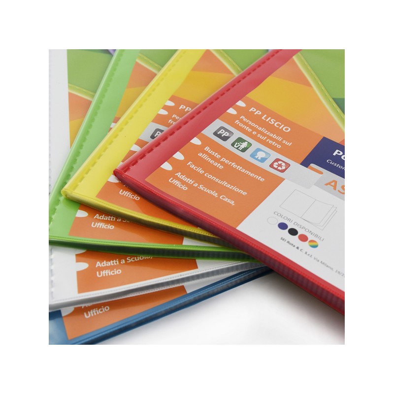 Portalistini Asso TI - personalizzabile - PP liscio - 22 x 30 cm - 20 buste - colori assortiti - Sei Rota