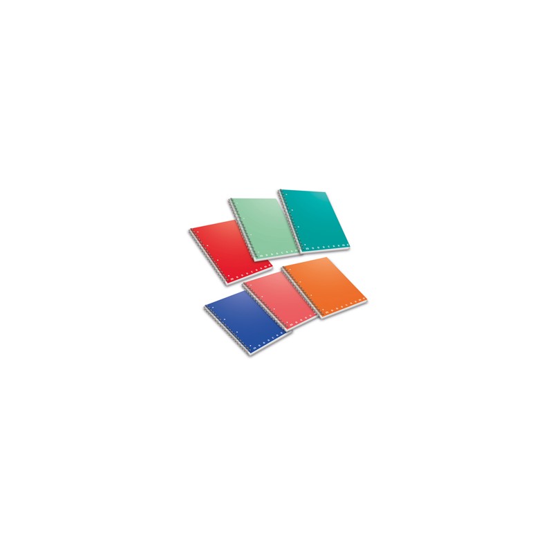 Quaderno spiralato f.to A5 70 fogli. Carta 80gr, con microperforazione. Copertina in cartoncino da 240gr plastificata lucida.