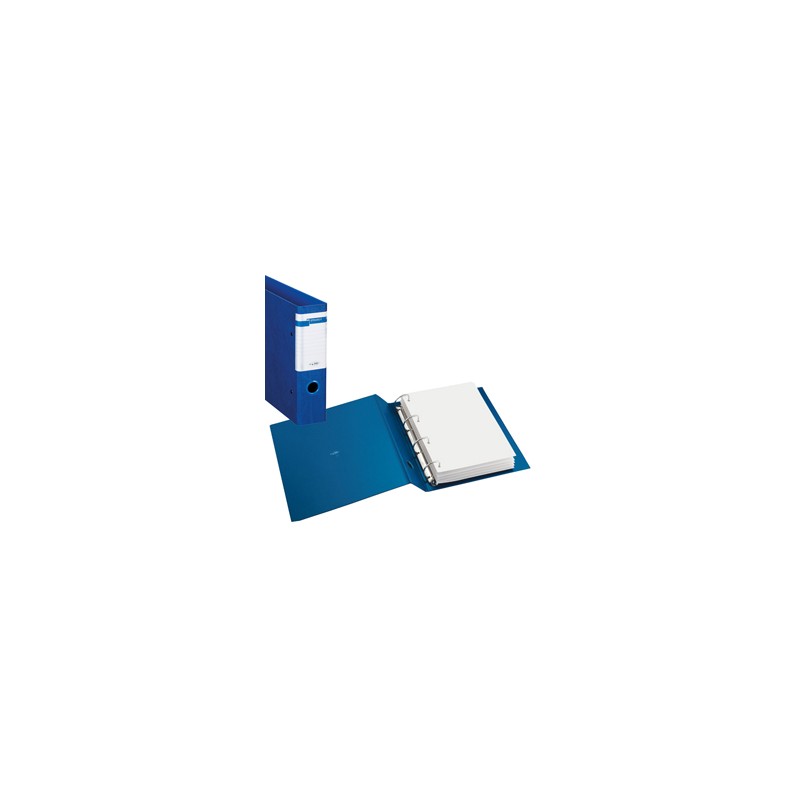 Raccoglitore in Colpan® (cartone rivestito in PVC) con meccanismo a 4 anelli quadri. Dotato di finestrino avvolgente con etichetta e di occhiello per l'estrazione in tinta. Ideale per archiviare documenti di frequente consultazione. Formato esterno: 280x310 mm. Formato contenuto: 220x300 mm (A4). Dorso: 90 mm. Diametro anelli: 65 mm. Colore blu.
