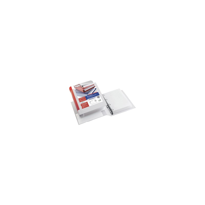 Raccoglitore personalizzabile in Colpan® (cartone rivestito in PVC) con tasca interna e meccanismo a 4 anelli (a D). Tasche trasparenti sul 1° quadrante e sul dorso che consentono l'inserimento facilitato della personalizzazione. Formato esterno: 285x310 mm. Formato contenuto: 220x300 mm (A4). Dorso: 75 mm. Diametro anelli: 50 mm. Colore rosso.