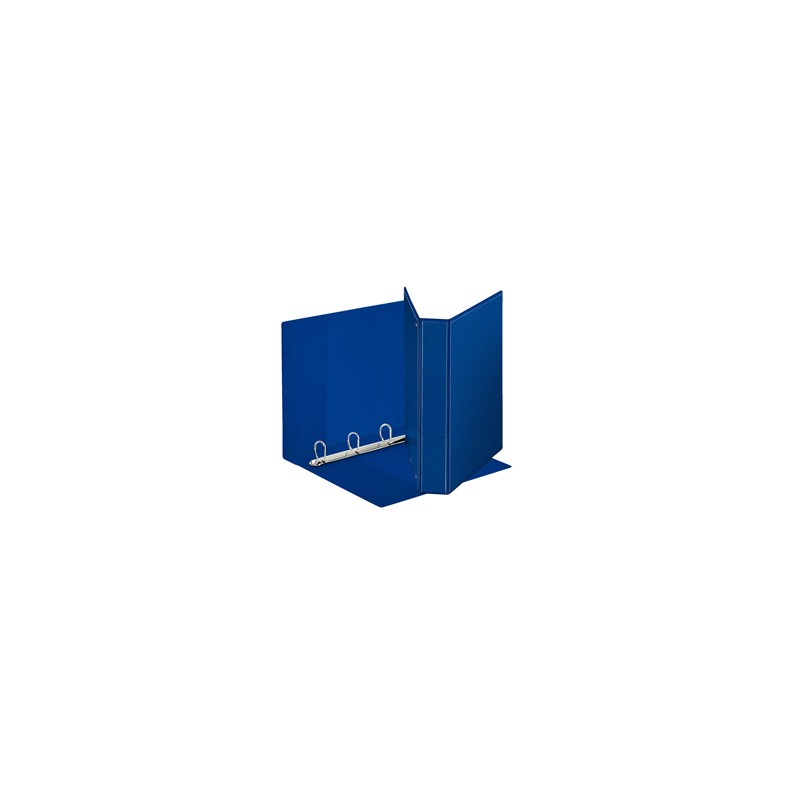 Raccoglitore display formato Maxi, in cartone da 2 mm rivestito in polipropilene eco-compatibile con finitura tipo pelle. Il rivestimento, incollato su entrambi i lati e saldato ai bordi, garantisce un prodotto di qualità eccellente. Il formato del raccoglitore consente di inserire indici e intercalari in formato Maxi per ospitare buste a perforazione universale. La personalizzazione è resa agevole da tre tasche esterne, mentre due tasche interne permettono di contenere fogli sparsi e appunti. Meccanismo a 4 anelli (a D, altezza 40 mm). Formato utile: 22x30 cm (A4). Dimensioni: 270x350x40 mm. Capacità: 380 fogli A4 (80 gr/mq). Colore blu.