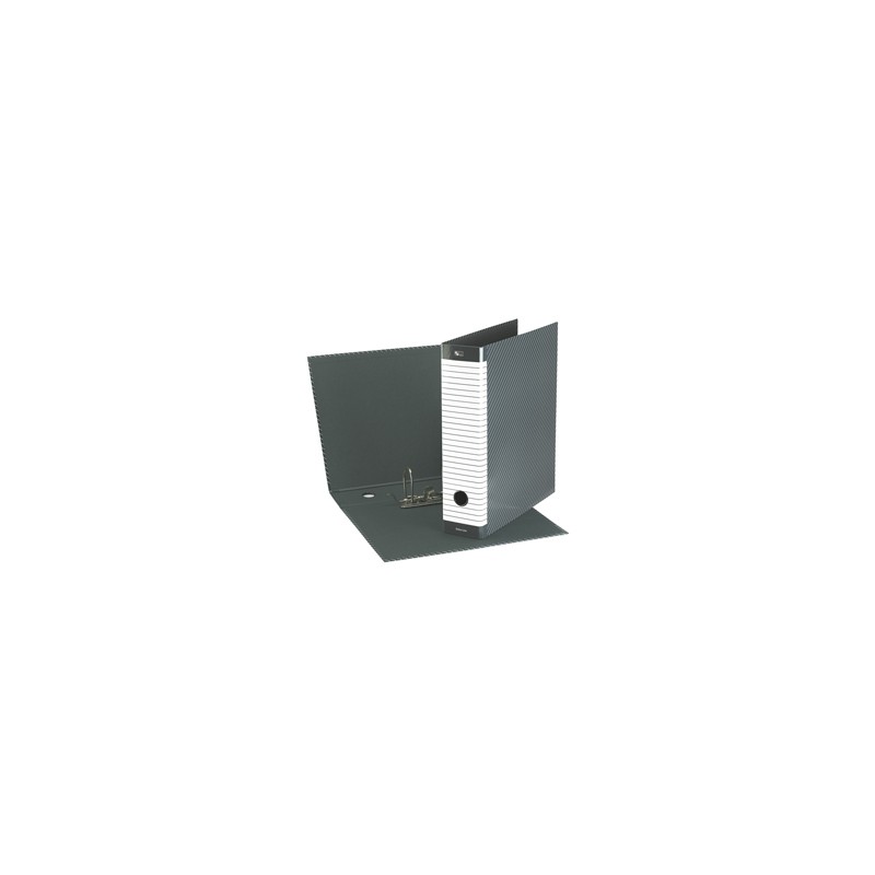 Registratore con ampio dorso riscrivibile per la massima personalizzazione. Robusta struttura in cartone (spessore 2 mm) rivestita in carta stampata e plastificata. Dotato di foro per l'estrazione e meccanismo a leva con 2 anelli. Resistente custodia da 0.9 mm in fibrone con bordi metallici rinforzati. Formato Commerciale (LxH) 23x30 cm. Dorso 8 cm. Colore grigio. Dimensioni 85x320x295 mm. Per cancellare le scritte pulire il dorso con una gomma per matita oppure con un batuffolo imbevuto di alcol denaturato o acetone.