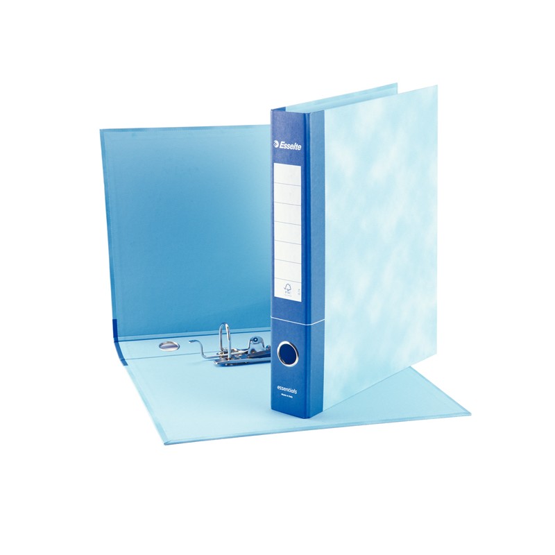 Registratore con meccanismo a leva rivestito in cartone blu (spessore 2 mm), con originale grafica nuvolata all'esterno ed effetto retinato di uguale tonalità all'interno. Foro per l'estrazione ed ampia etichetta stampata sul dorso per favorire la personalizzazione e rendere più veloce l’individuazione del documento ricercato. Resistente custodia in fibrone con bande metalliche di rinforzo che mantengono i bordi perfettamente diritti anche dopo un lungo utilizzo. Formato Protocollo (LxH) 23x33 cm. Dorso 5 cm. Dimensioni 55x350x295 mm.