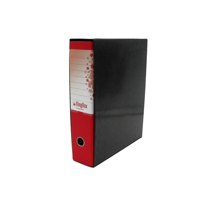 KingBox è un registratore indeformabile, lavabile e duraturo nel tempo, in cartone accoppiato da 2 mm di spessore, con rivestimento in resistente polipropilene goffrato. Dotato di propria custodia in cartone accoppiato nero, con bordi rinforzati, e di meccanismo a leva di alta qualità ancorato saldamente mediante 4 rivetti. Per agevolare la presa e facilitare l'archiviazione, KingBox presenta un anello di estrazione in acciaio nichelato (diametro 25 mm) ed una etichetta personalizzabile/scrivibile all'interno di una comoda busta termosaldata in PVC trasparente (170x100 mm), interamente fasciante il dorso. Il registratore KingBox è disponibile in 2 modelli formato protocollo (dorso 5 e dorso 8) e in un'ampia gamma di colori. Caratteristiche di questo articolo: • Codice: STL4022 • Modello: KingBox Protocollo dorso 8 • Colore: rosso • Formato utile: (LxH 23x33cm) • Dorso: 8cm • Custodia: compresa • Portaetichetta con cartoncino: compreso • Meccanismo: a leva con pressino • Dimensioni esterne: 285x355x85mm • Confezione: 1pz