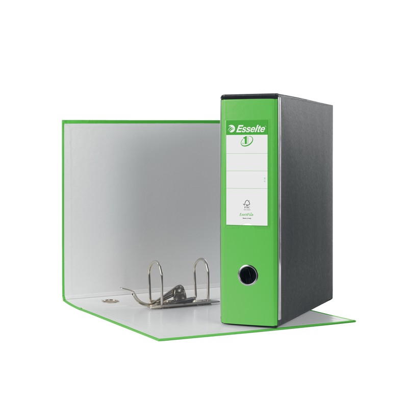 Registratore in robusto cartone da 2 mm, rivestito sia internamente che esternamente in polipropilene incollato su entrambi i lati. Dotato di ampia etichetta scrivibile su entrambi i lati e di portaetichetta saldato sul dorso. L'ottima qualità dei materiali impiegati, l’elevato livello di finitura e la lavorazione “case-made” lo rendono una garanzia in termini di resistenza, robustezza, funzionalità ed eleganza. Queste caratteristiche, oltre alle bande metalliche di rinforzo che mantengono i bordi della custodia perfettamente diritti anche dopo un lungo utilizzo, rendono Eurofile ideale per un uso intensivo. Formato Commerciale (LxH) 23x30 cm. Dorso 8 cm. Colore verde VIVIDA. Dimensioni 85x320x295 mm.