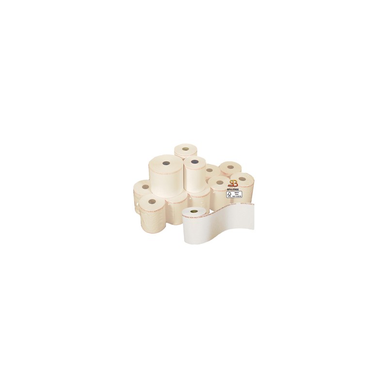 Rotoli in carta termica adesiva per per BILANCE. Stampa della dicitura non vale come scontrino fiscale su lato termico (fronte), lato sinistro. Tipo carta: termica adesiva priva di bisfenolo A (BPA FREE), certificata FSC. Larghezza 57 mm. Lunghezza 38 mt (+/-1%). Diametro esterno rotolo 82 mm. Anima 25 mm. Grammatura 112g/m2 (+/-3%) - (frontale 64 g/m2 , supporto 48 g/m2).