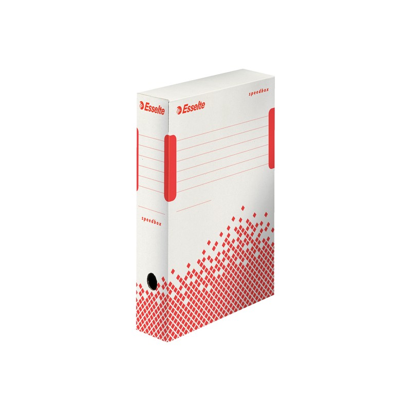 Scatole archivio di alta qualità dotate di un sistema di assemblaggio facile e veloce e AUTOMONTANTE. Dotate di doppia chiusura sul dorso per evitare rotture del foro di presa; doppie pareti e doppio fondo per la massima tenuta. Realizzate con il 100% di cartone riciclato e riciclabile. Certificate FSC. Box 80 - 35x25x8cm