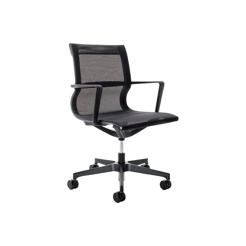 Poltrona dirigenziale tecnologica, ultra leggera in rete traspirante. Struttura integrale in nylon /poliammide, meccanismo oscillante libero e braccioli fissi. Elevazione a gas. Altezza totale -> 91-99cm Larghezza sedile -> 68cm Altezza seduta --> 44-52cm Larghezza seduta: 50cm (57cm c/bracc)