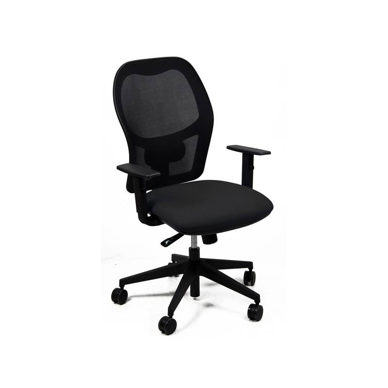 Seduta operativa girevole - elevazione a gas - meccanismo syncro - 4 blocchi anti shock - meccanismo a contatto permanente - Schienale con supporto lombare regolabile. Rivestimento in tessuto "ECO- Eco" 100% polipropilene. Completa di braccioli regolabili. Alt.tot: 102-113cm; Prof. tot: 68cm; Alt. schienale: 60cm; Largh. schienale: 48cm; Largh. sedile: 48cm; Prof.sedile: 46cm; Alt. sedile: 42-54cm.