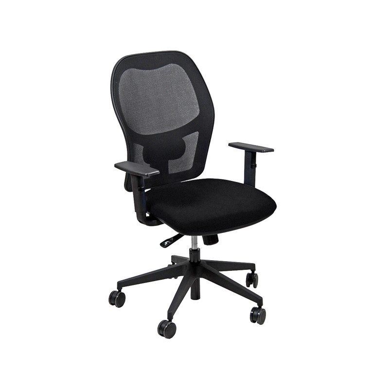 Seduta operativa girevole con elevazione a gas, meccanismo syncro, 4 blocchi anti shock e meccanismo a contatto permanente. Schienale con supporto lombare regolabile. Completa di braccioli regolabili. Rivestimento in tessuto "FASHION - Chili" 75% poliestere riciclato e certificazione di infiammabilità 1IM. Alt.tot: 102-113cm; Prof.tot: 68cm; Alt.schienale: 60cm; Largh.schienale: 48cm; Largh.sedile: 48cm; Prof.sedile: 46cm; Alt.sedile: 42-54cm.