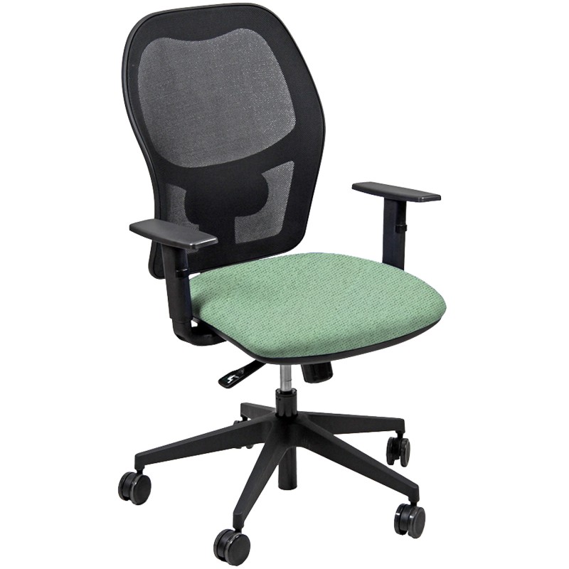Seduta operativa girevole con elevazione a gas, meccanismo syncro, 4 blocchi anti shock e meccanismo a contatto permanente. Schienale con supporto lombare regolabile. Completa di braccioli regolabili. Rivestimento in tessuto "FASHION - Chili" 75% poliestere riciclato e certificazione di infiammabilità 1IM. Alt.tot: 102-113cm; Prof.tot: 68cm; Alt.schienale: 60cm; Largh.schienale: 48cm; Largh.sedile: 48cm; Prof.sedile: 46cm; Alt.sedile: 42-54cm.
